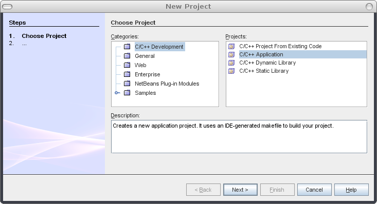 In this section we will create a new C++ project on NetBeans, as well as configuring the compiler and linker flags for the program. As the C\C++ Development Pack is not bundled by default with NetBeans, you need to download and install it if you don't have it already. Once you have it installed, follow the steps below: